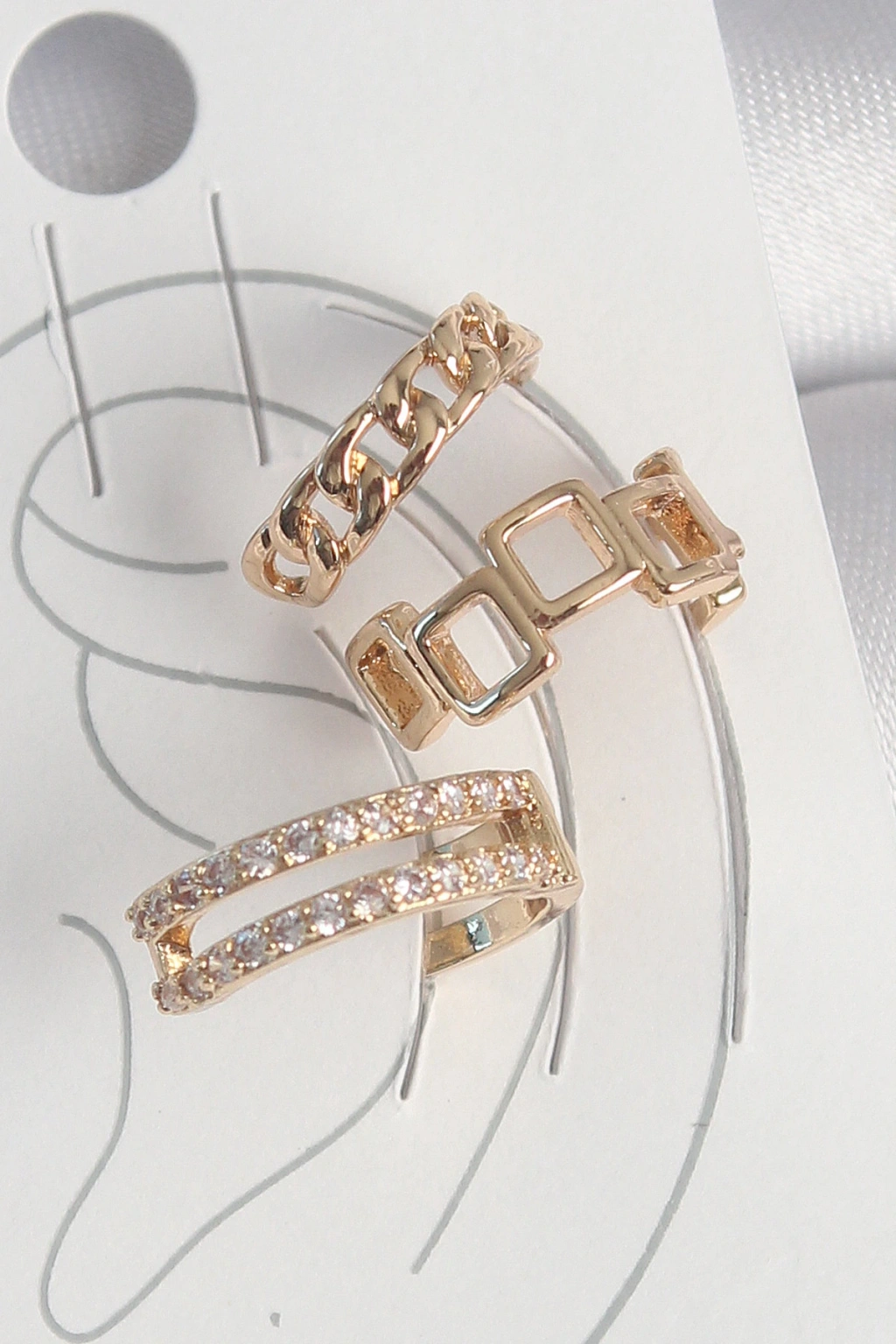 Pirinç Gold Renk Zirkon Taşlı Kare Zincir Model Kadın Kıkırdak Küpe