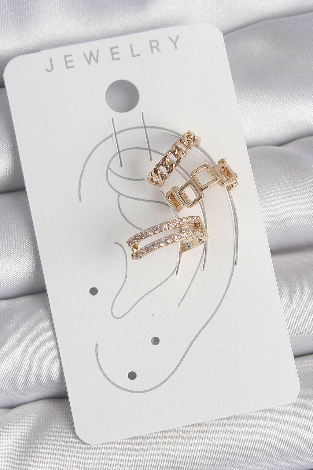 Pirinç Gold Renk Zirkon Taşlı Kare Zincir Model Kadın Kıkırdak Küpe
