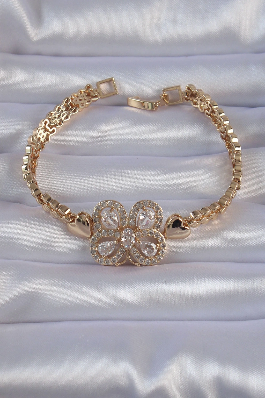 Pirinç Gold Renk Zirkon Taşlı Kelebek Figürlü Parçalı Model Bileklik