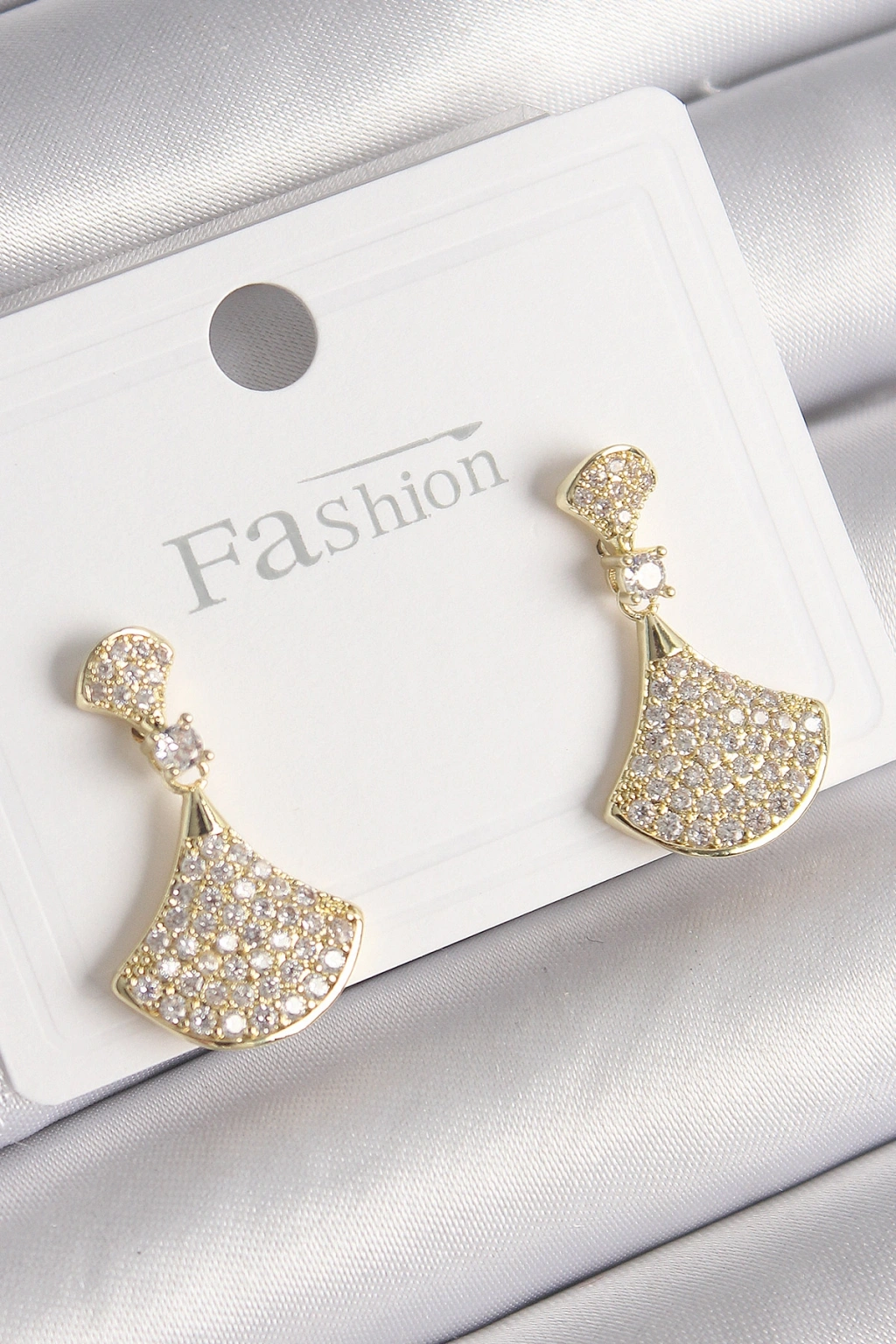 Pirinç Gold Renk Zirkon Taşlı Motif Model Kadın Küpe