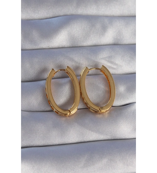 Pirinç Gold Renk Zirkon Taşlı Oval Model Küpe