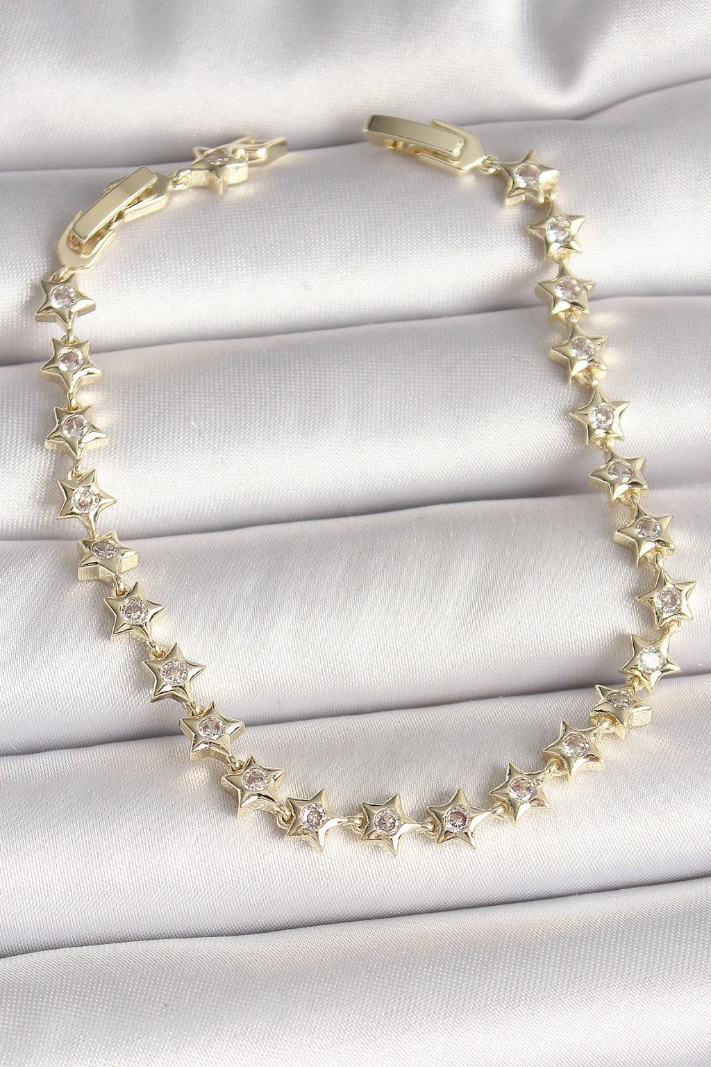 Pirinç Gold Renk Zirkon Taşlı Yıldız Model Vıp Seri Kadın Bileklik