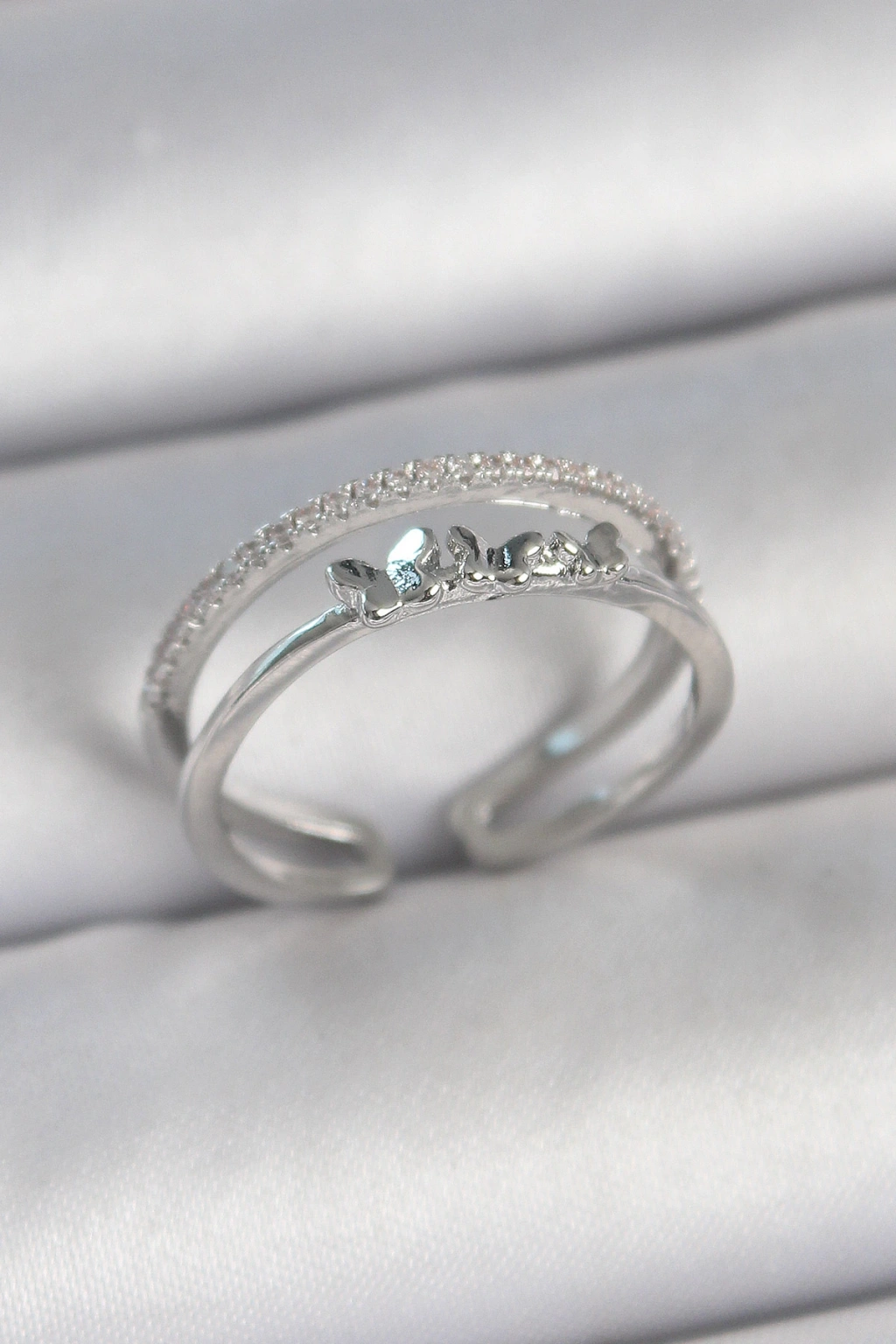 Pirinç Gümüş Renk 2'li Zirkon Taş Detaylı Kelebek Figür Ayarlanabilir Model Kadın Yüzük