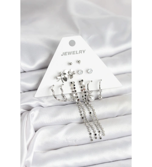 Pirinç Gümüş Renk 6 Çift Kadın Küpe