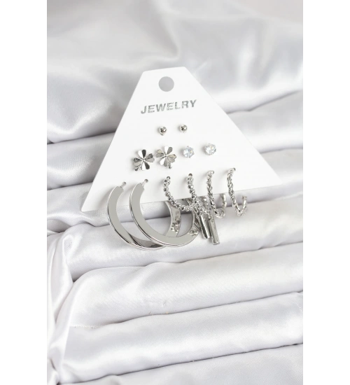 Pirinç Gümüş Renk 6 Çift Kadın Küpe Seti