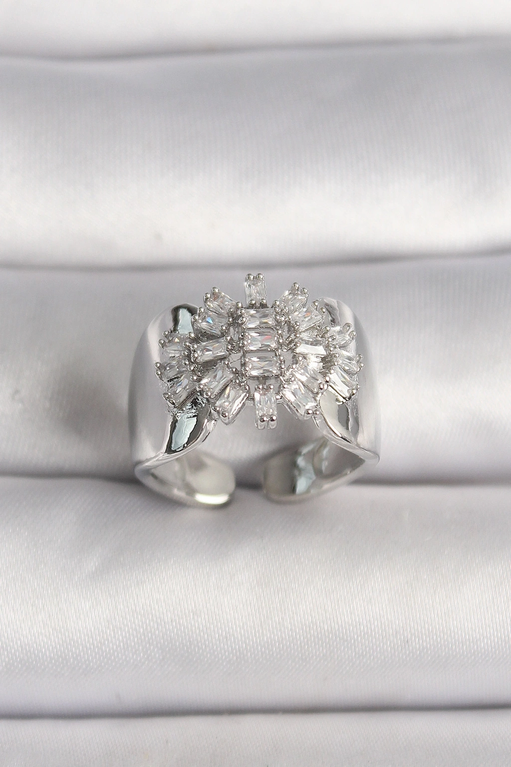 Pirinç Gümüş Renk Ayarlanabilir Baget Zirkon Taş Model Kadın Yüzük