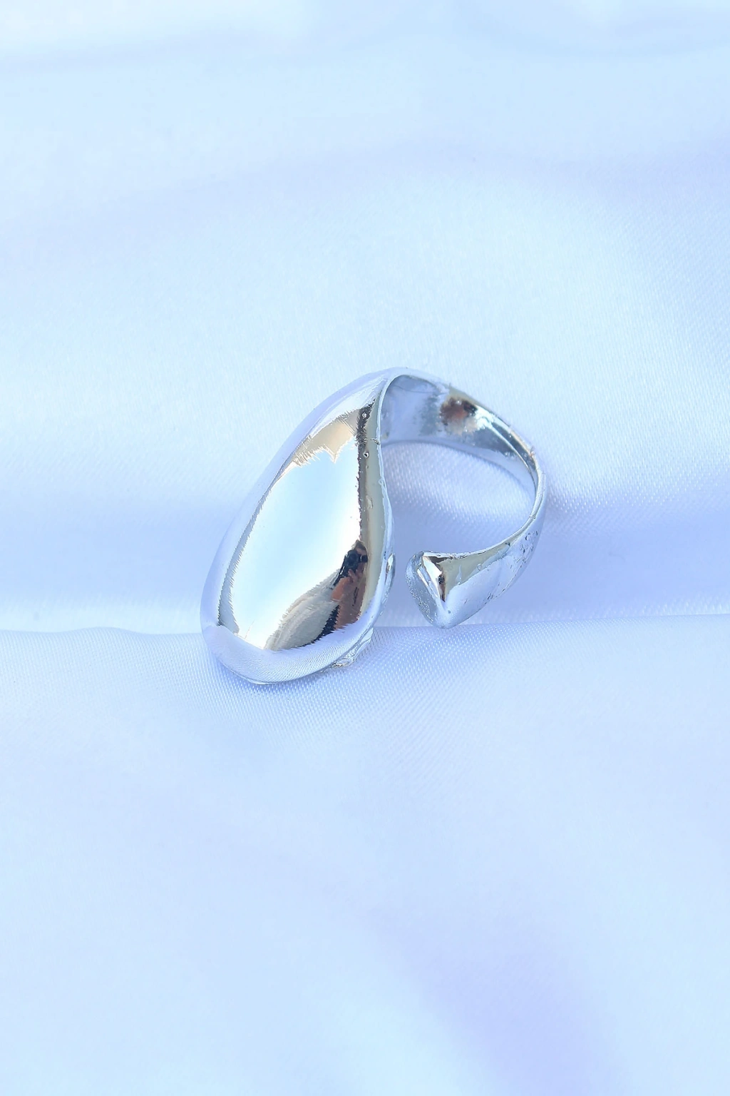 Pirinç Gümüş Renk Ayarlanabilir İri Bombeli Yüzük