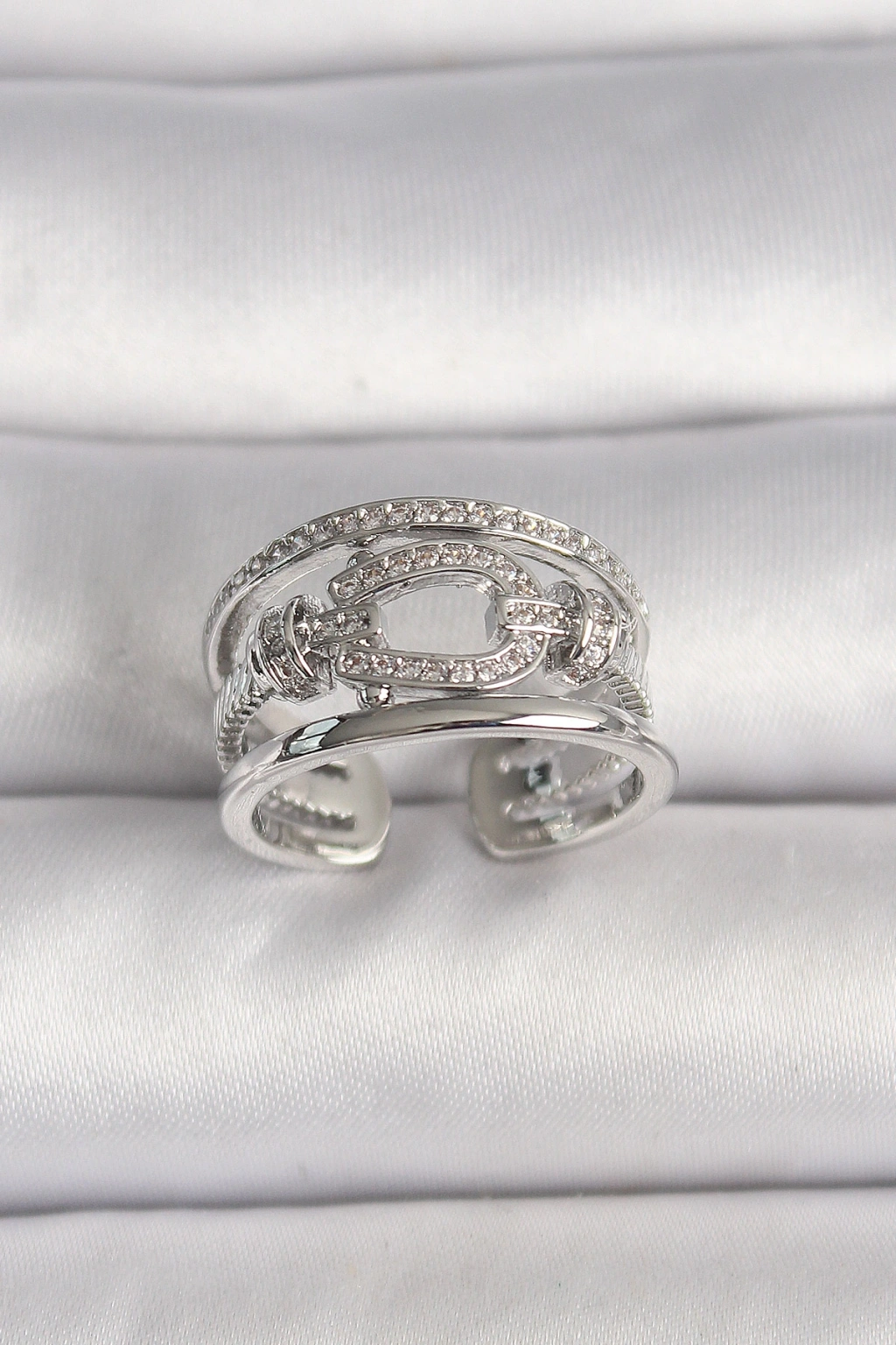 Pirinç Gümüş Renk Ayarlanabilir Zirkon Taşlı Gemici Düğüm Model Kadın Yüzük