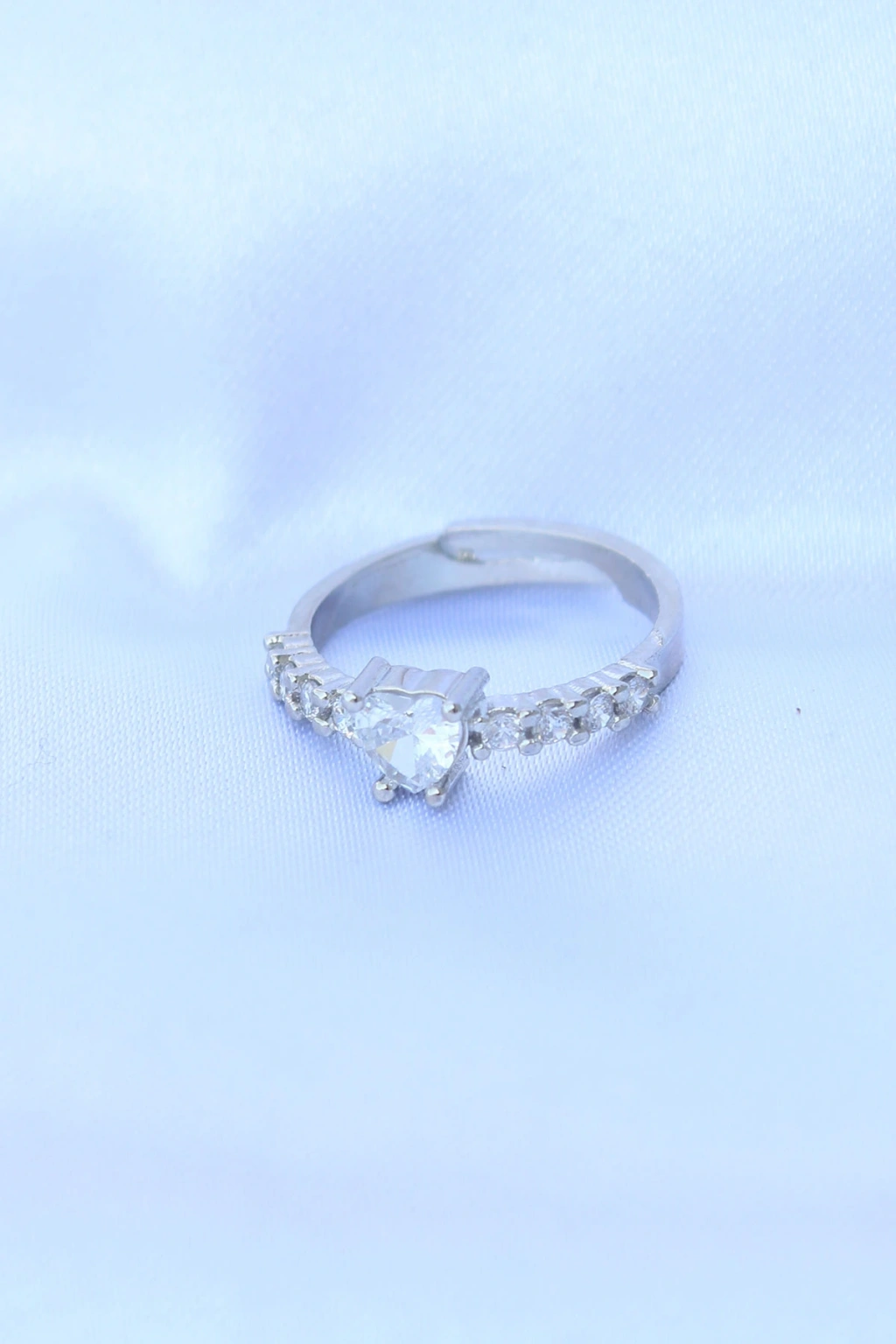 Pirinç Gümüş Renk Ayarlanabilir Zirkon Taşlı Minimal Kalp Yüzük