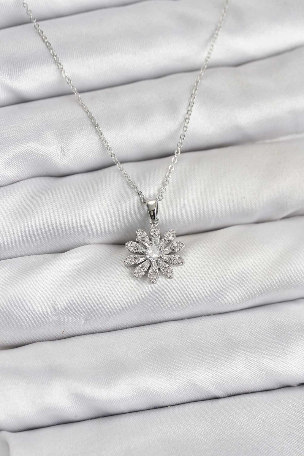 Pirinç Gümüş Renk Çiçek Model Kadın Kolye