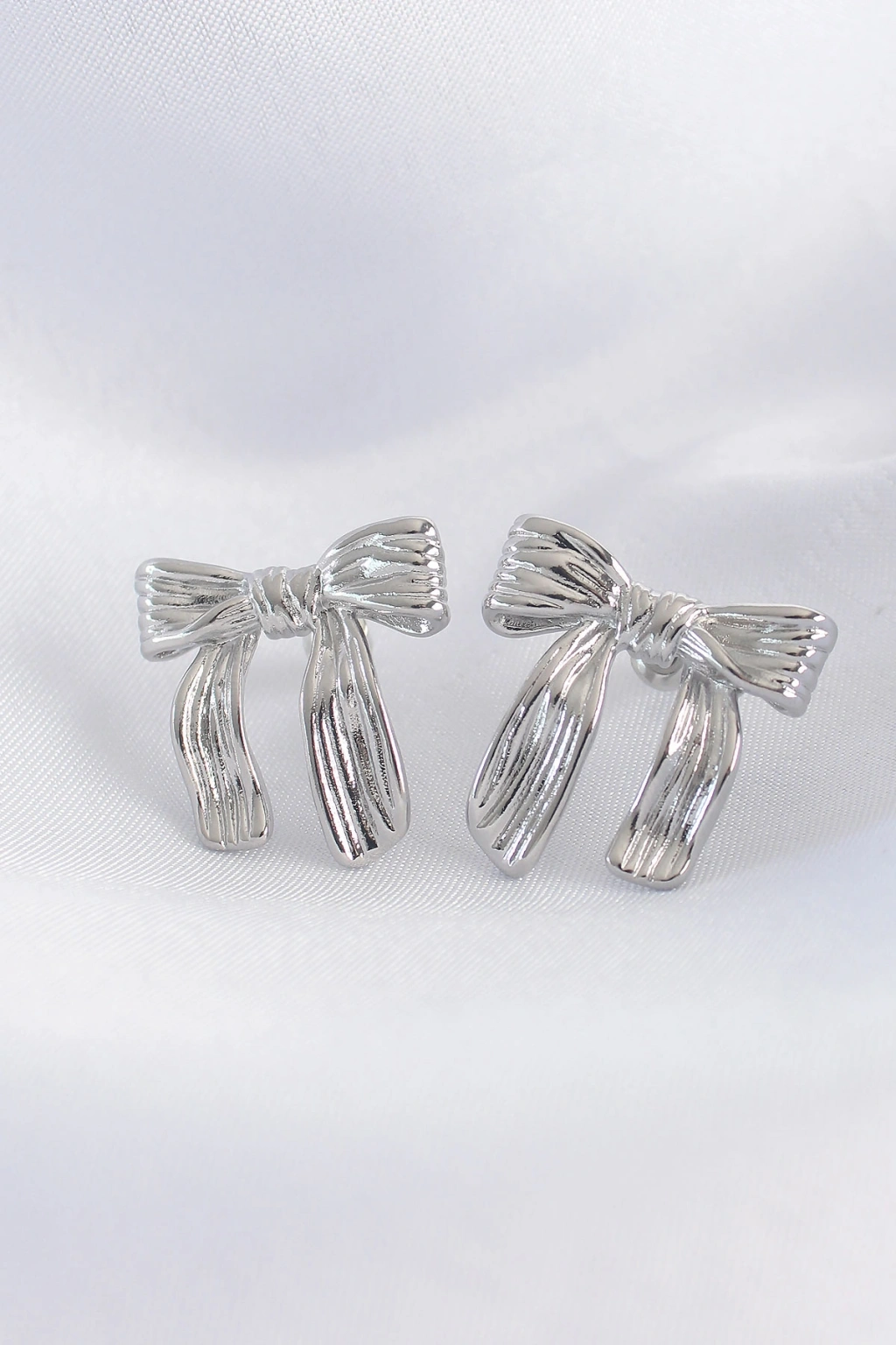 Pirinç Gümüş Renk Çizgi Detay Fiyonk Küpe
