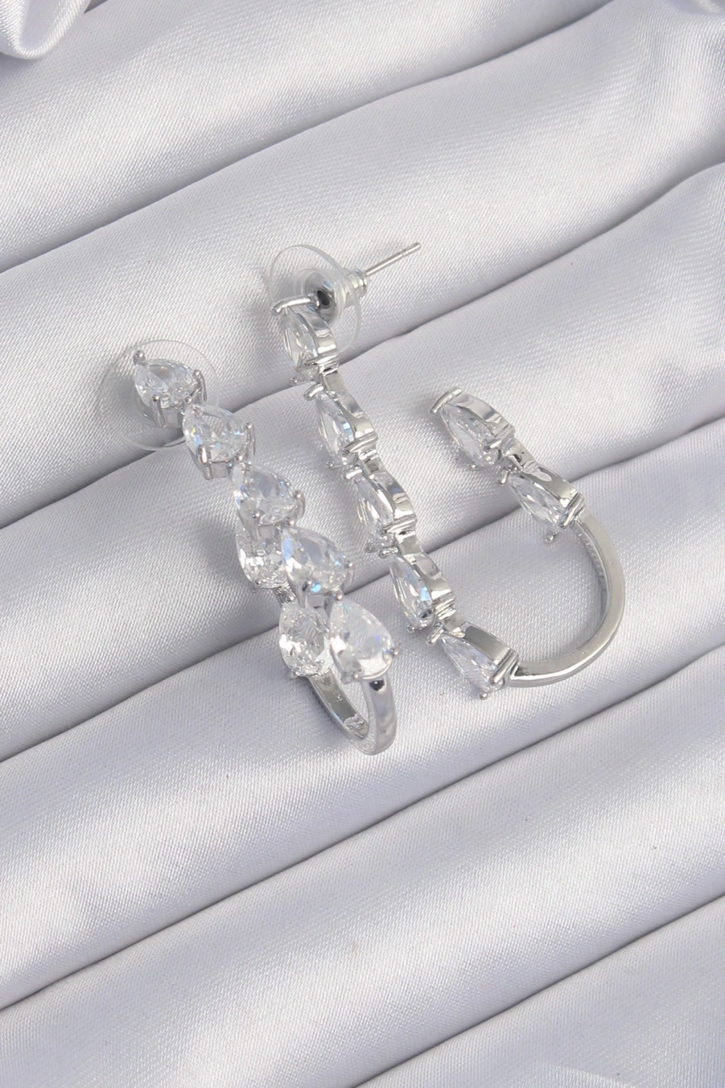Pirinç Gümüş Renk Damla Zirkon Taş Tasarımlı Küpe