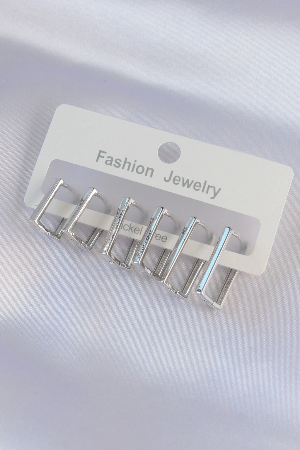 Pirinç Gümüş Renk Dikdörtgen Model Küpe Seti