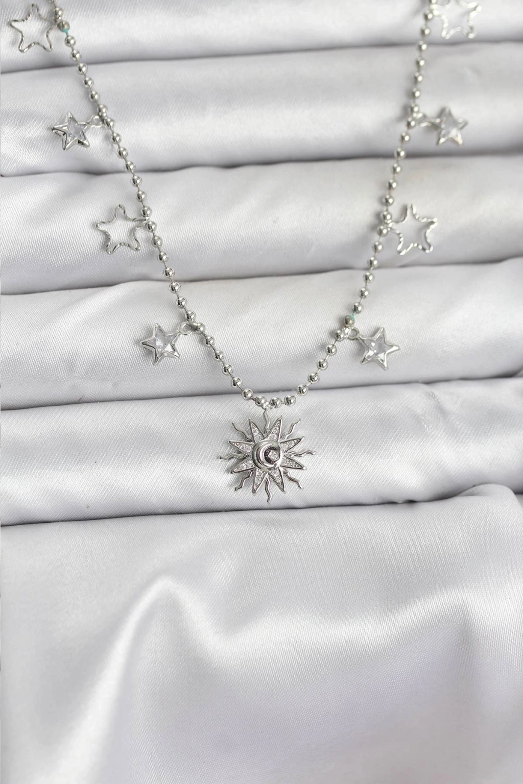 Pirinç Gümüş Renk Güneş Model Kadın Kolye