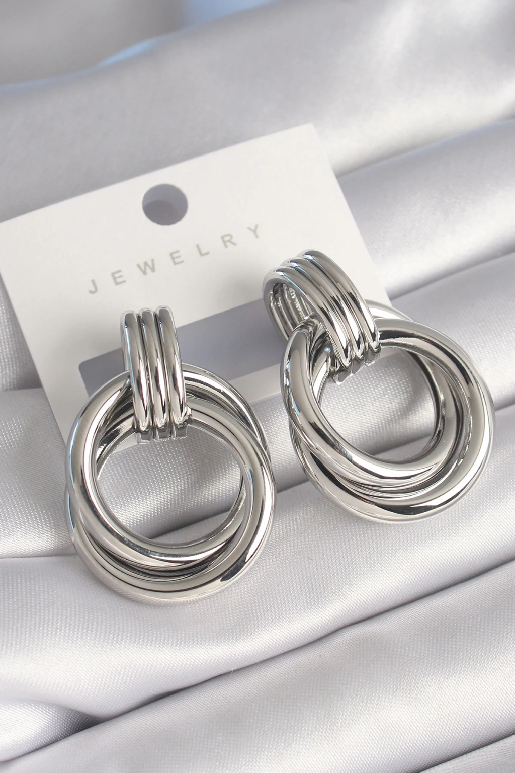 Pirinç Gümüş Renk Halka Model Kadın Küpe