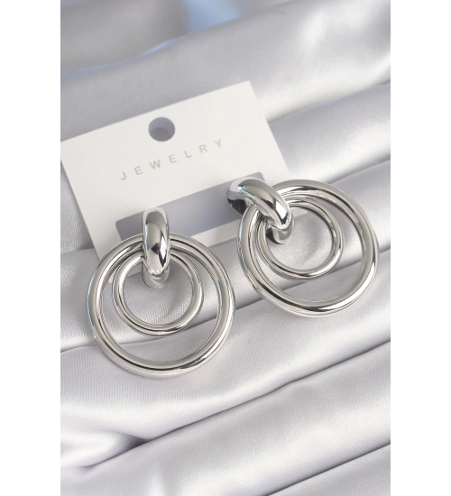 Pirinç Gümüş Renk Halka Model Kadın Küpe