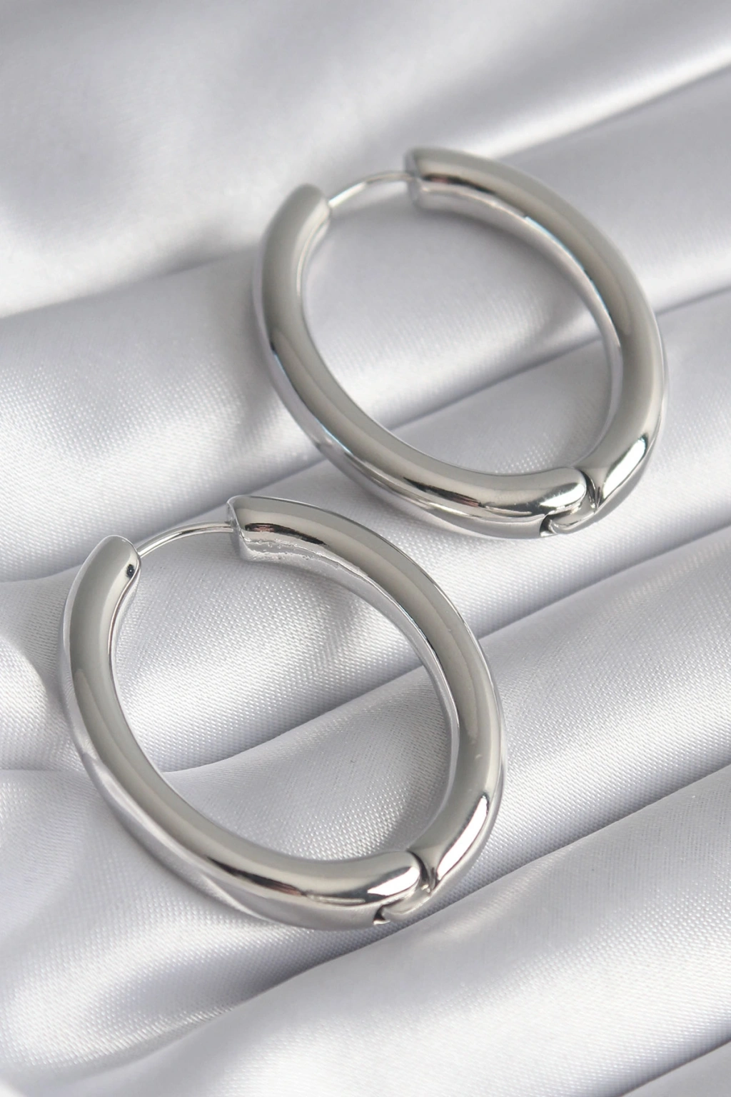 Pirinç Gümüş Renk Halka Model Kadın Küpe