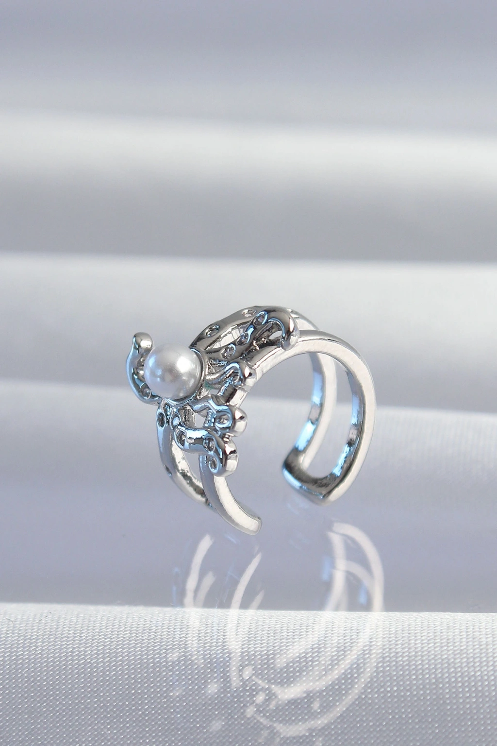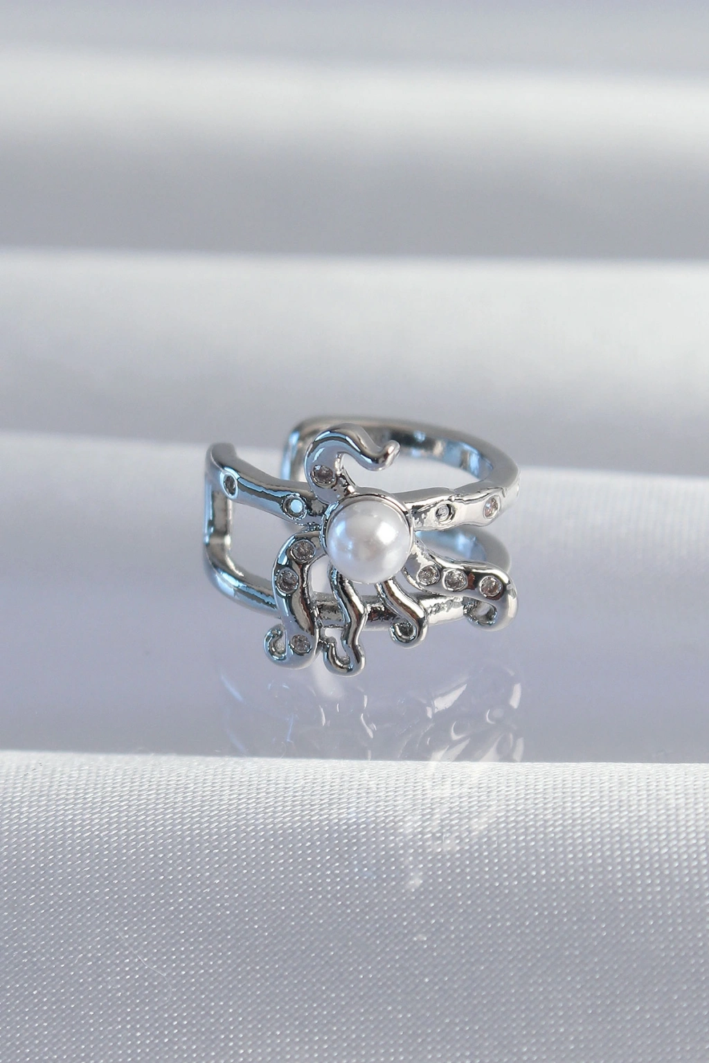 Pirinç Gümüş Renk İncili Ahtapot Earcuff Küpe