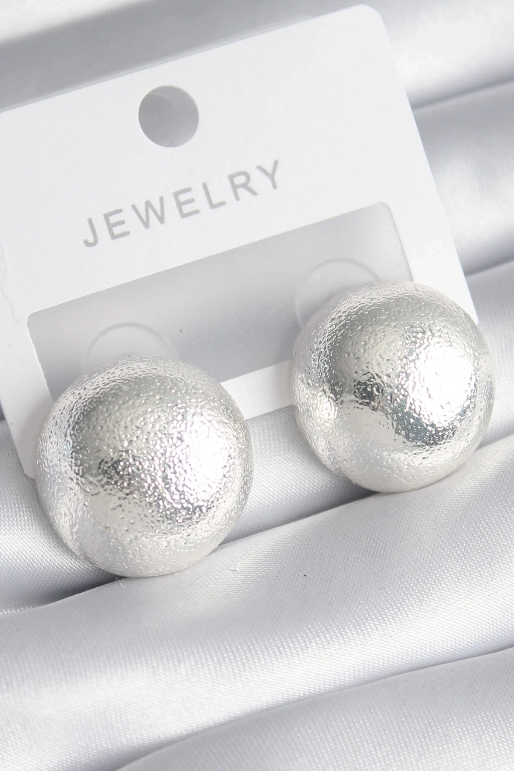 Pirinç Gümüş Renk İşleme Detay Top Model Kadın Küpe