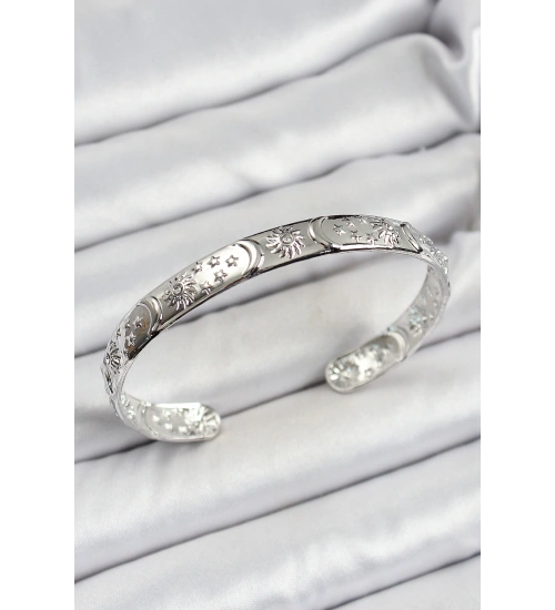 Pirinç Gümüş Renk İşlemeli Altı Açık Bileklik