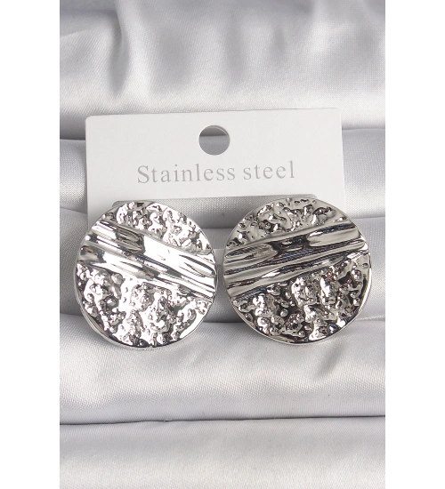 Pirinç Gümüş Renk İşlemeli Daire Plaka Model Kadın Küpe