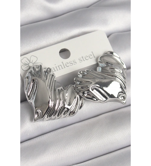 Pirinç Gümüş Renk İşlemeli Kalp Model Kadın Küpe