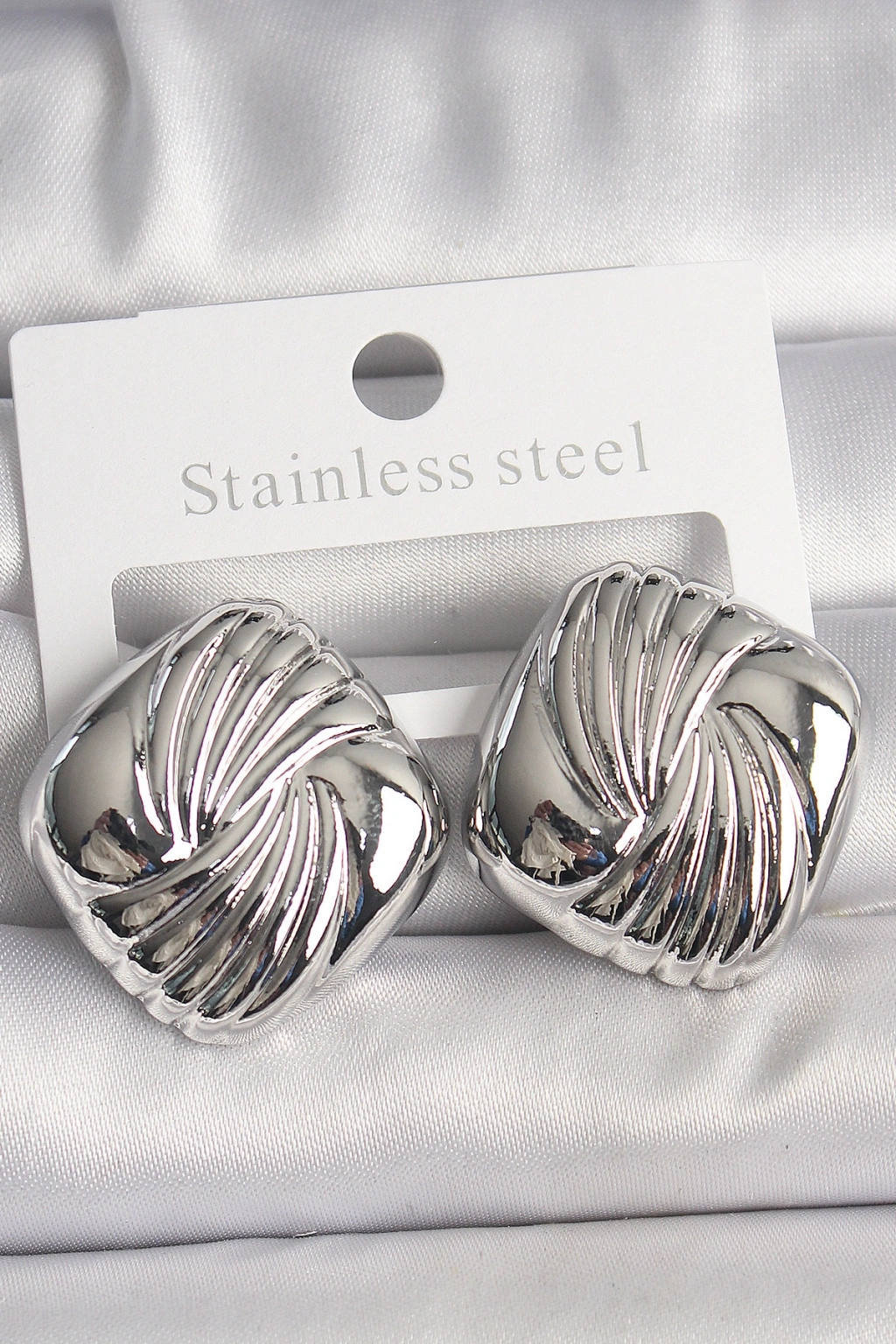 Pirinç Gümüş Renk İşlemeli Kare Model Kadın Küpe