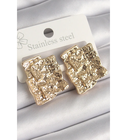 Pirinç Gümüş Renk İşlemeli Kare Plaka Model Kadın Küpe