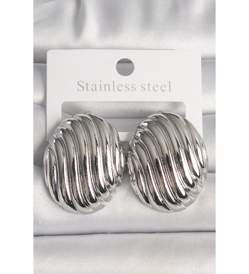 Pirinç Gümüş Renk İşlemeli Oval Model Kadın Küpe