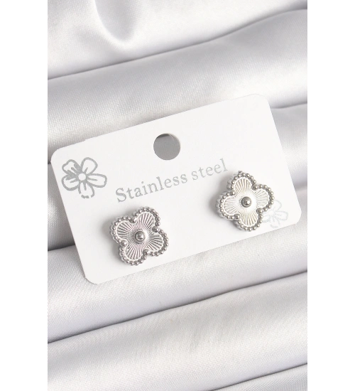 Pirinç Gümüş Renk İşlemeli Yonca Model Kadın Küpe