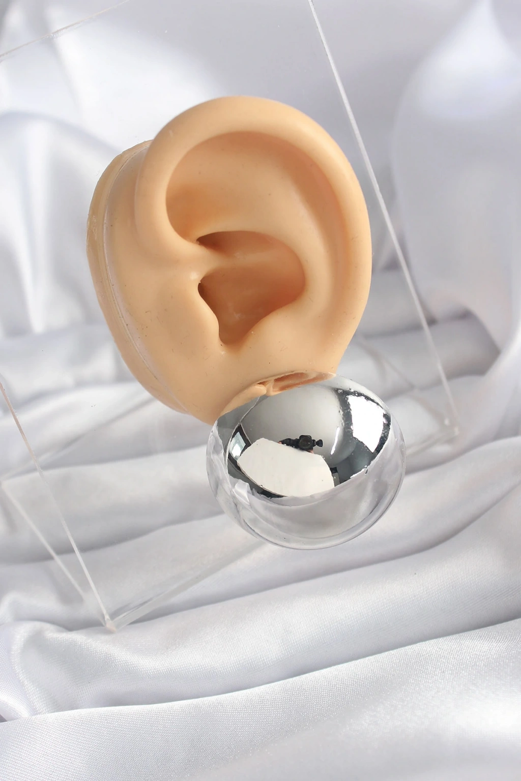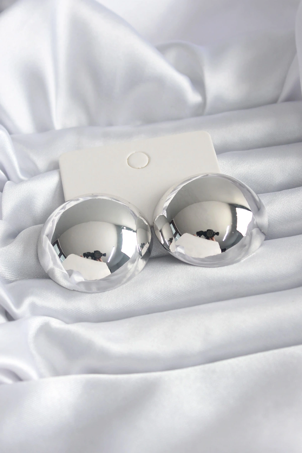 Topçuk Model Gümüş Renk Pirinç Sallantılı Kadın Küpe Seti