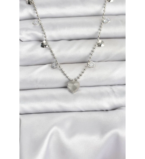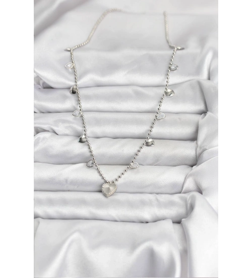 Pirinç Gümüş Renk Kalp Model Kadın Kolye