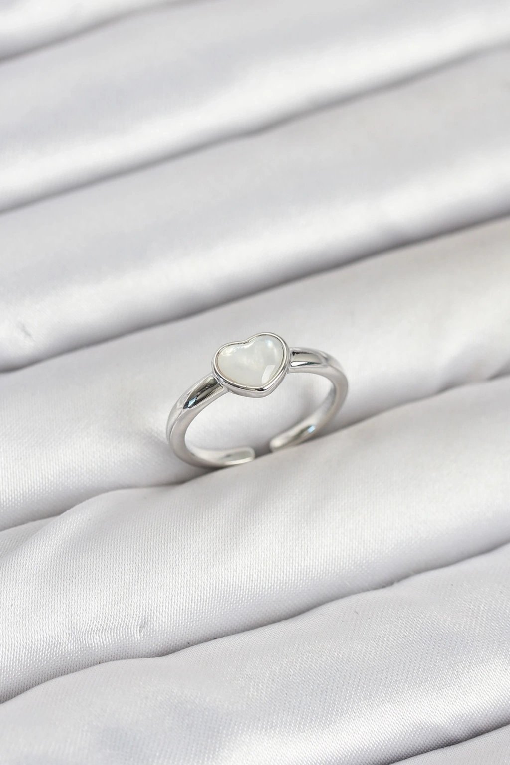 Pirinç Gümüş Renk Kalpli Kadın Yüzük