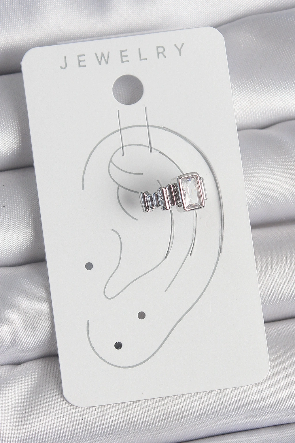 Pirinç Gümüş Renk Kare Zirkon Taşlı Kadın Kıkırdak Model Küpe