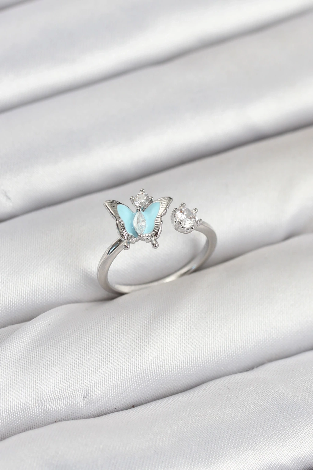 Pirinç Gümüş Renk Kelebek Model Kadın Yüzük