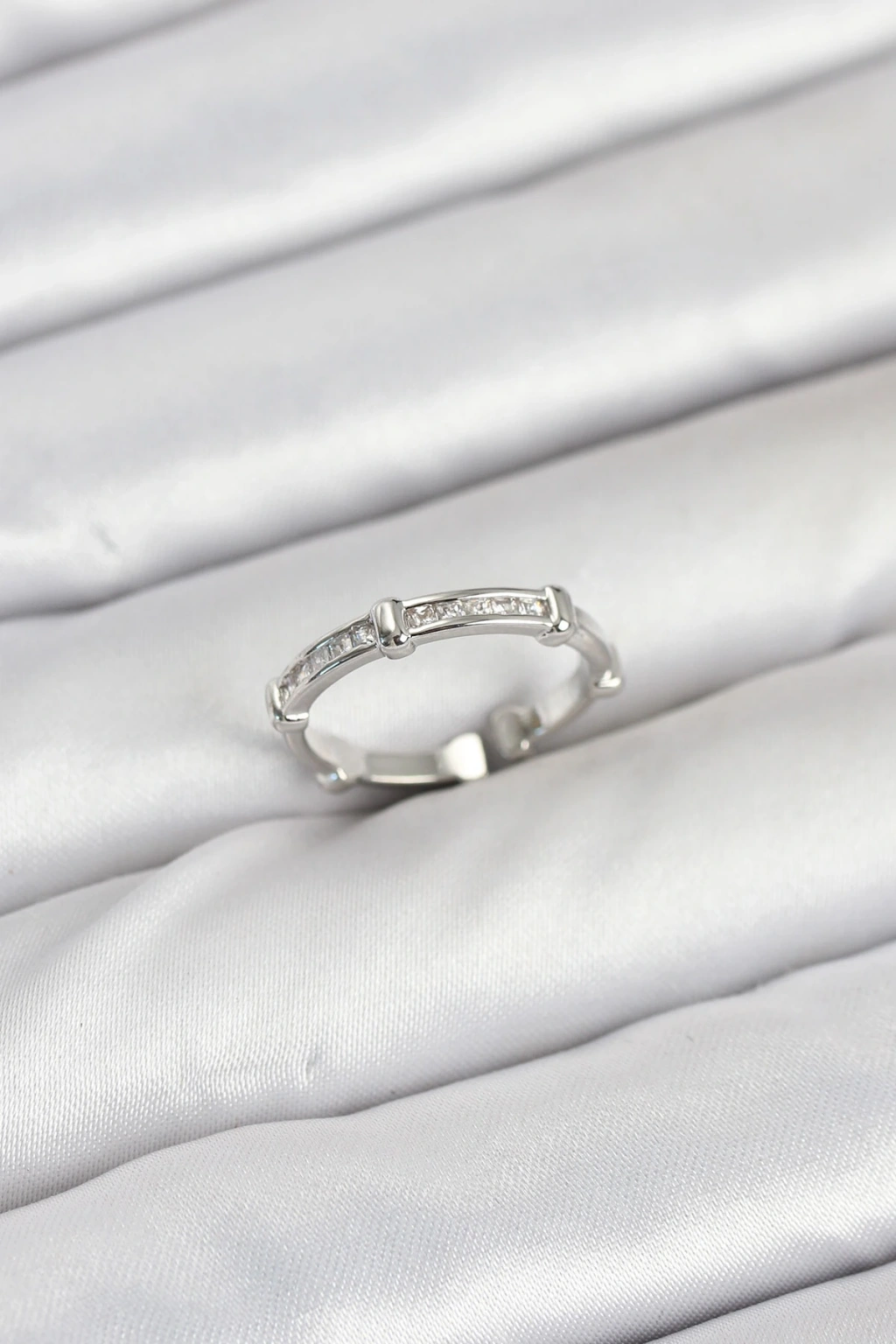 Pirinç Gümüş Renk Kemik Model Zirkon Taşlı Kadın Yüzük