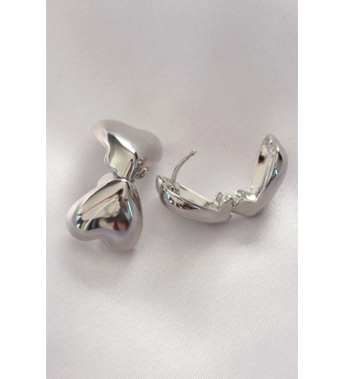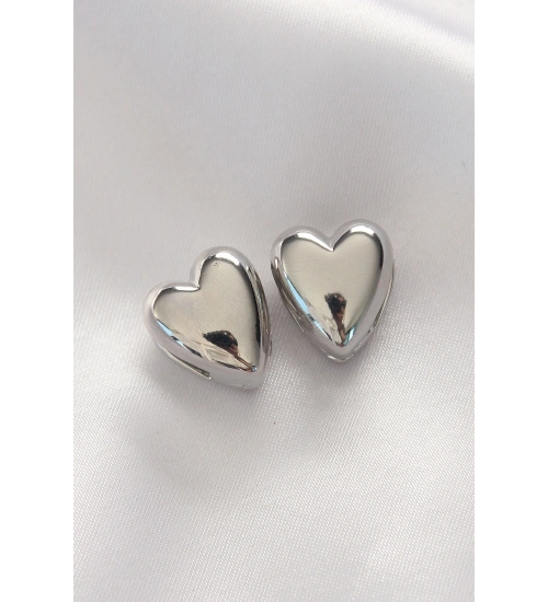 Pirinç Gümüş Renk Minimal Bombeli Kalp Küpe