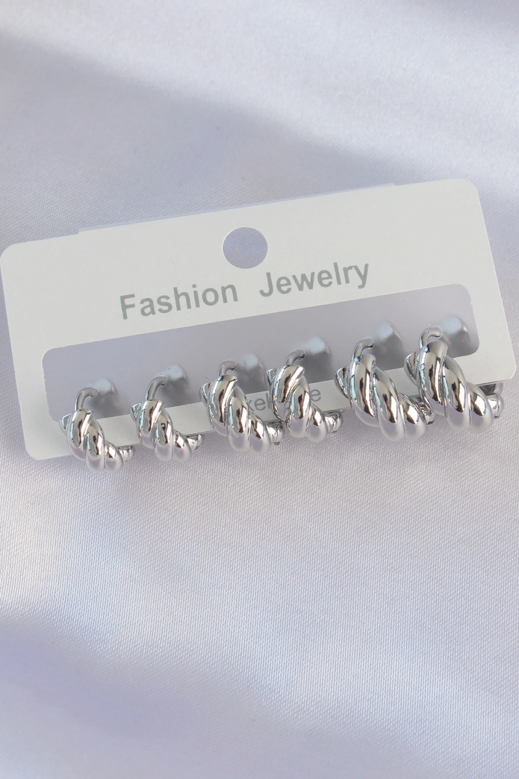 Pirinç Gümüş Renk Minimal Tırtıklı Küpe Seti