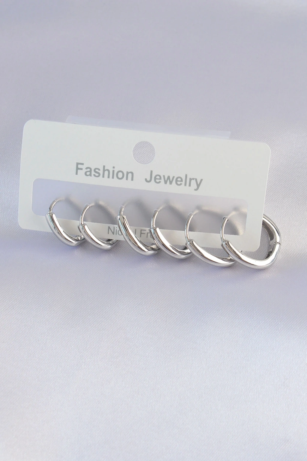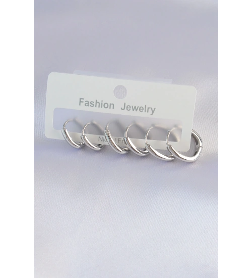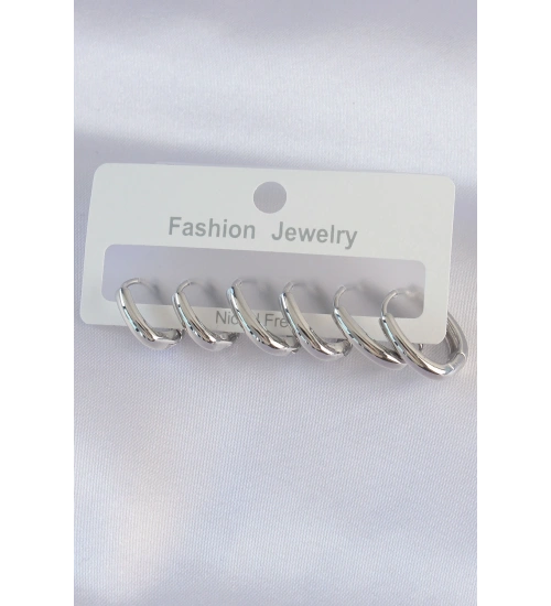 Pirinç Gümüş Renk Oval Küpe Seti