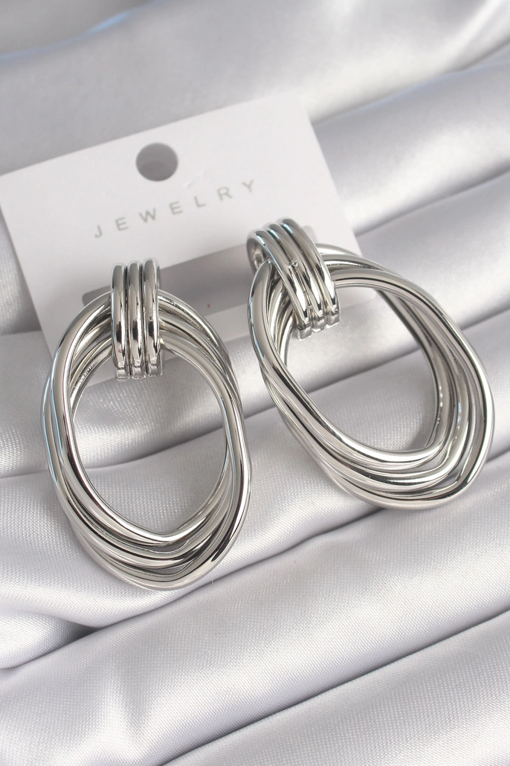 Pirinç Gümüş Renk Oval Model Kadın Küpe