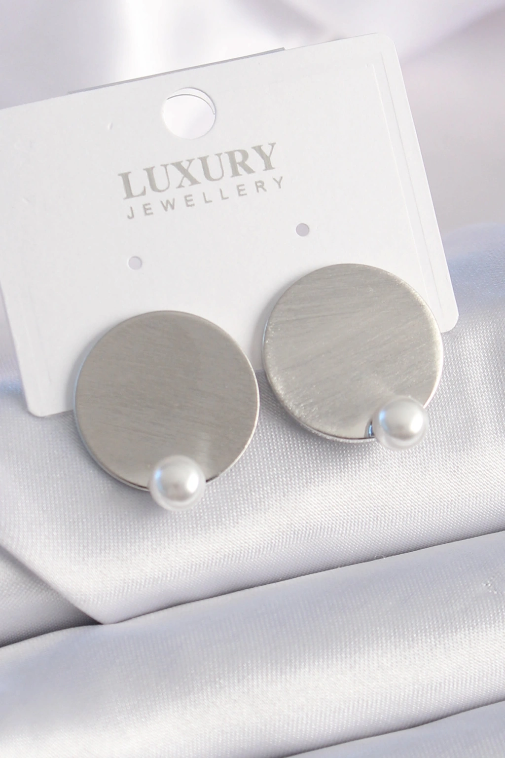 Pirinç Gümüş Renk Plaka Model İnci Detay Kadın Küpe