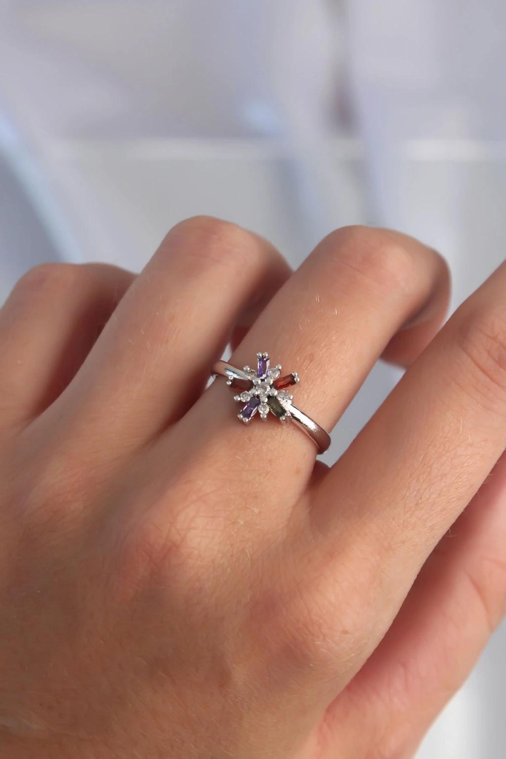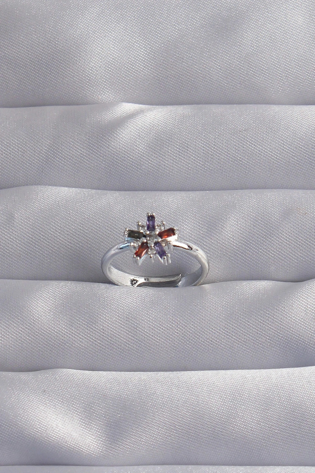 Pirinç Gümüş Renk Renkli Zirkon Taşlı Ayarlamalı Yüzük