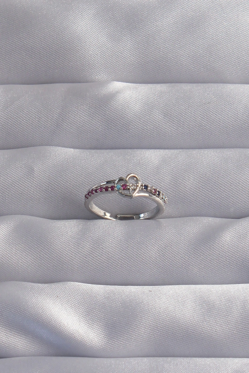 Pirinç Gümüş Renk Renkli Zirkon Taşlı Ayarlamalı Yüzük