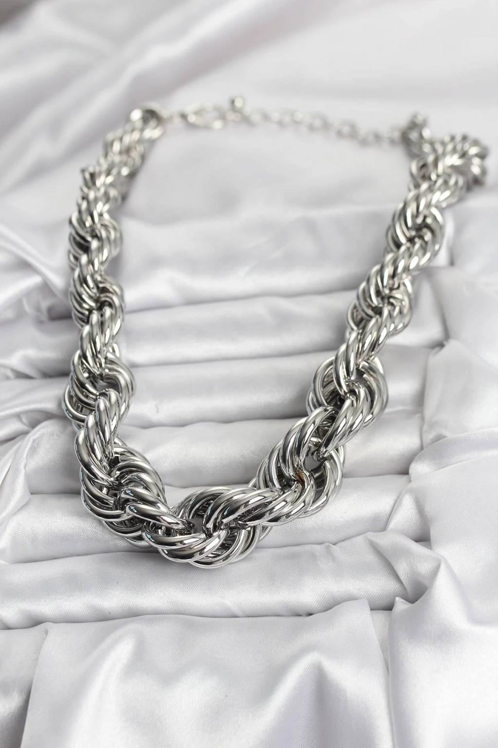 Pirinç Gümüş Renk Sarmal Halat Model Kadın Kolye