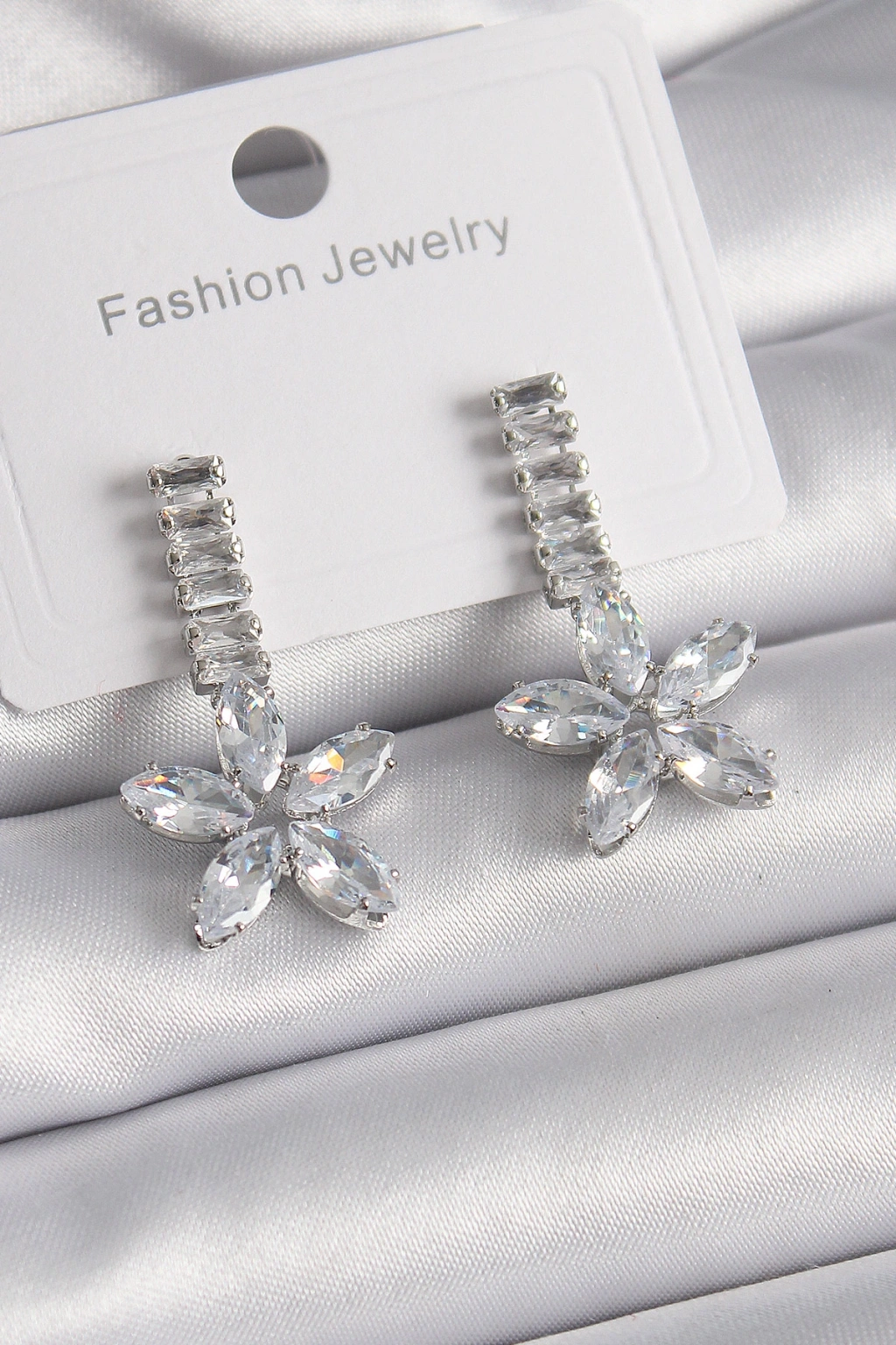Pirinç Gümüş Renk Su Yolu Zirkon Taşlı Çiçek Model Kadın Küpe