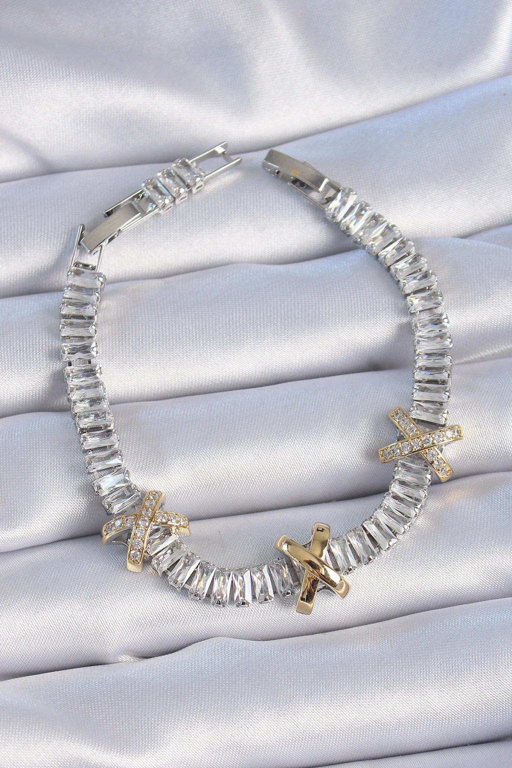 Pirinç Gümüş Renk Taşlı Su Yolu Model Vip Seri Kadın Bileklik