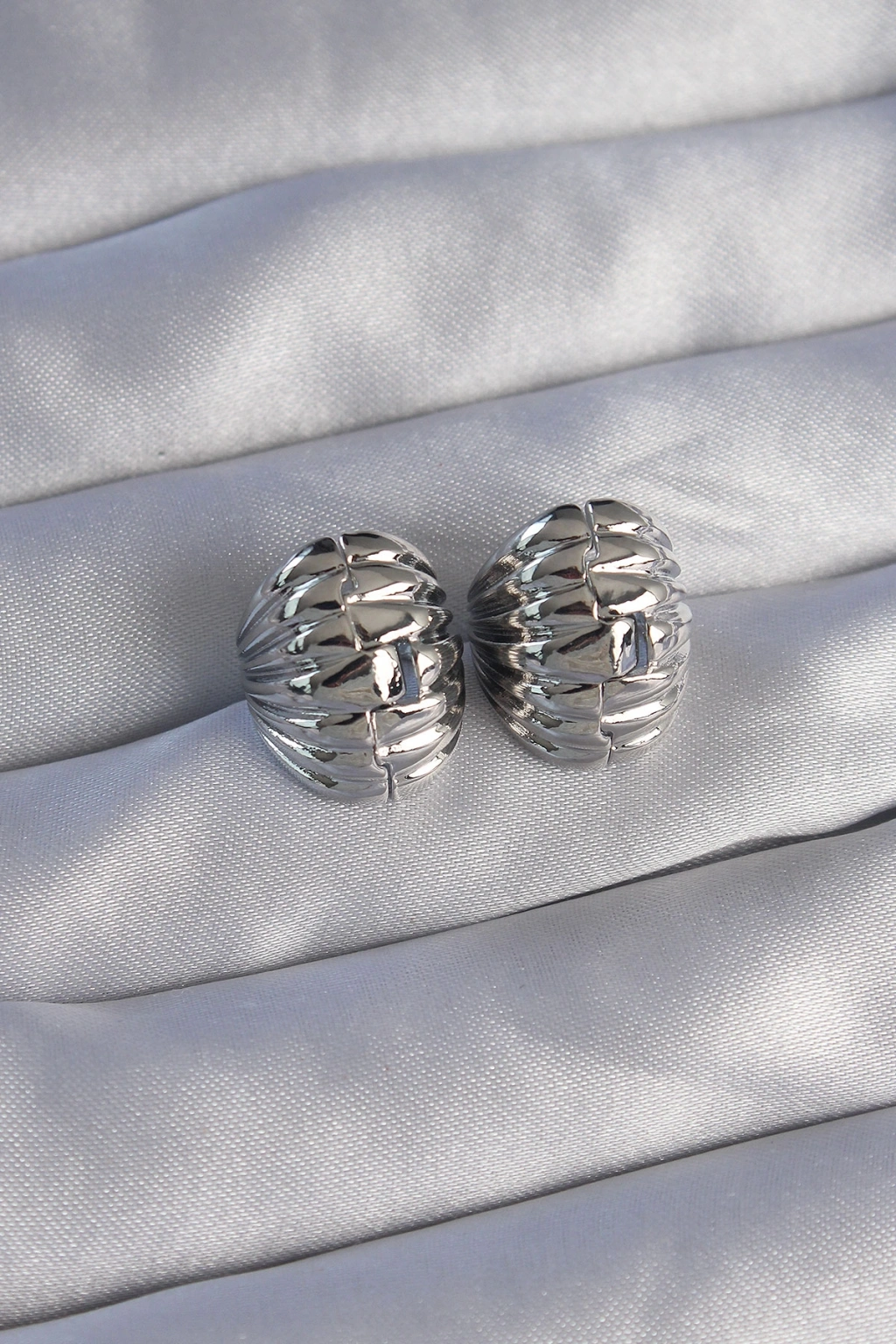 Pirinç Gümüş Renk Tırtıklı Minimal Bombeli Tasarım Küpe