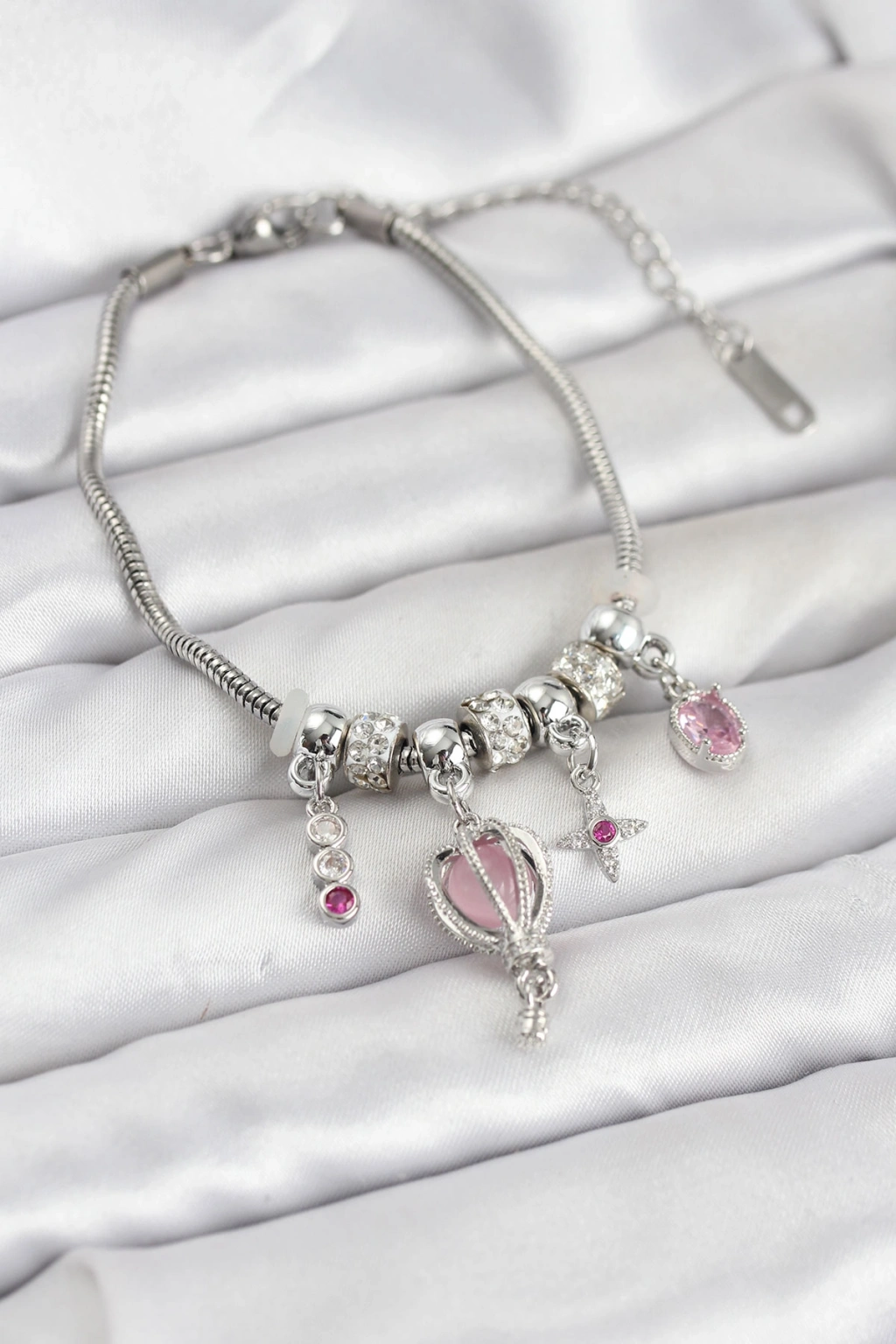 Pirinç Gümüş Renk Uçan Balon Charmlı Kadın Bileklik