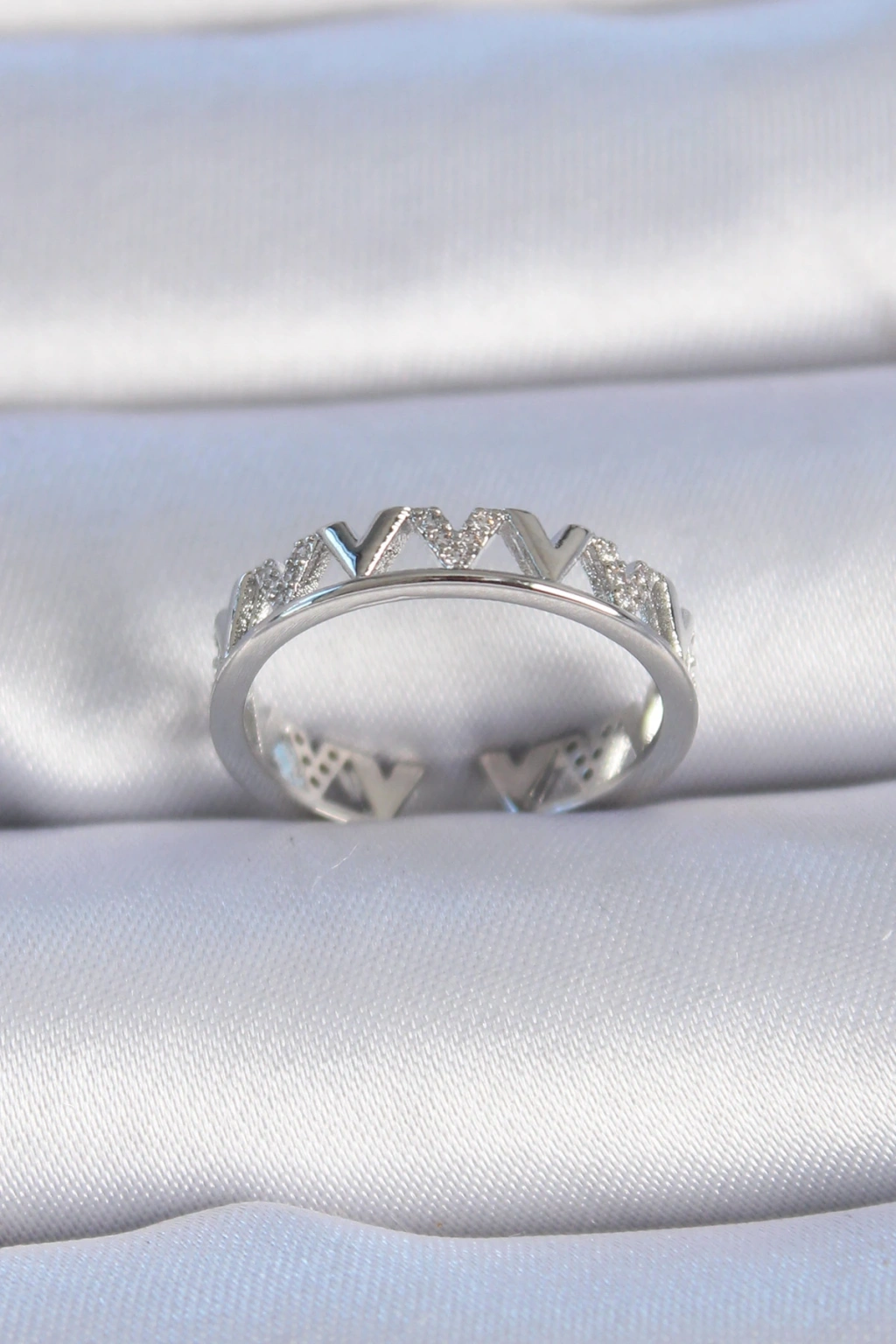 Pirinç Gümüş Renk "v" Model Zirkon Taşlı Kadın Yüzük