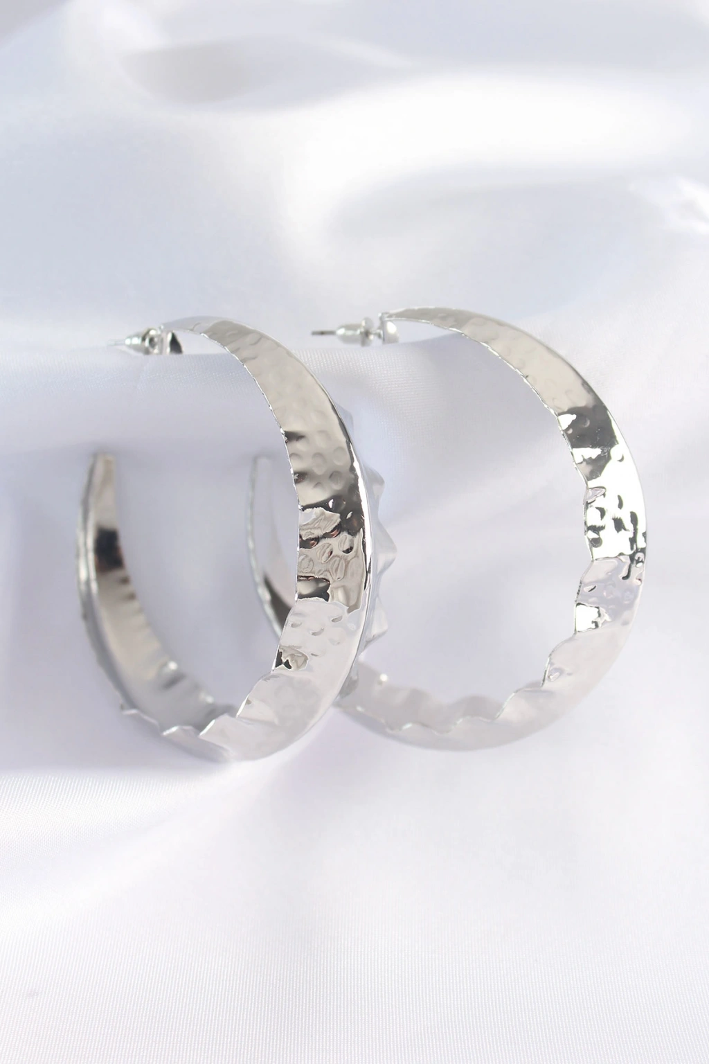 Pirinç Gümüş Renk Yaprak Desenli Halka Küpe
